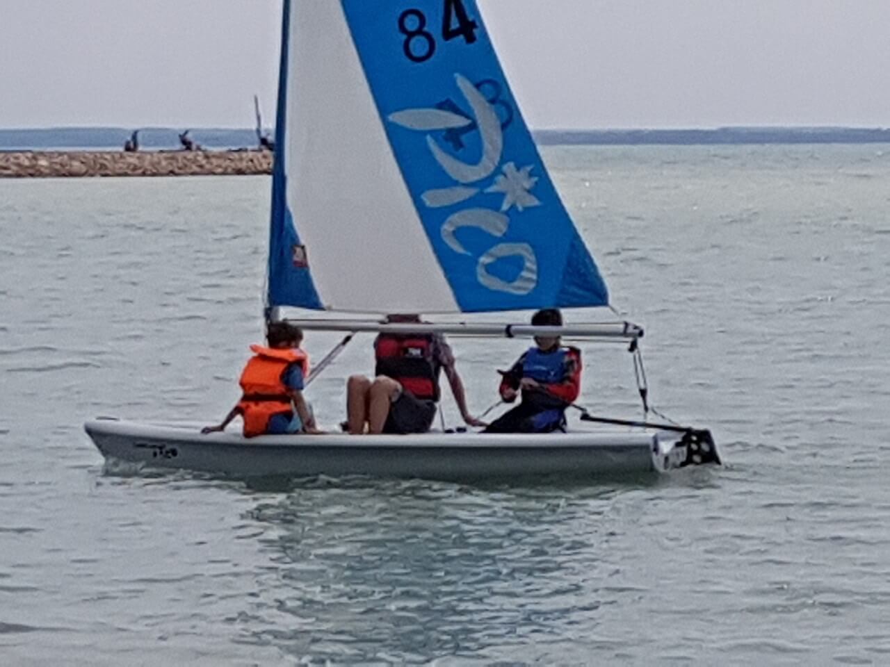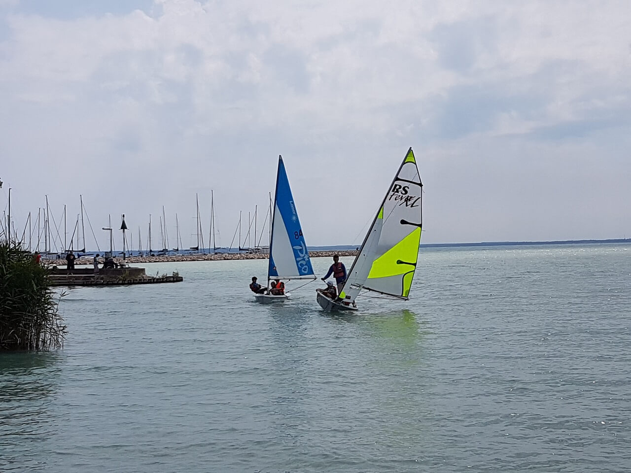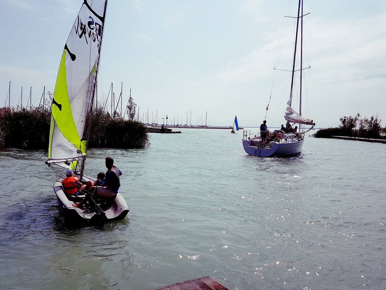 Két klubtagunk nagyhajóval vitt el 4-5 gyermeket egy kb. 40 perces vitorlázásra, mialatt a többiek Barlay Kristóf edző és Siklósi Mór Optimist versenyzőnk RS Feva, illetve Laser Pico hajókkal vitorláztak váltva 5-8 perceket. Az idő sokat segített abban, hogy a mosoly és a nevetés hamar felváltotta az aggódást: a víz 25 fokos, a szél 3 Bf, a nap szépen sütött. Míg elsőre meglepett arcokat láttunk, amikor a ruhák vizesedéséről beszéltünk, a visszaérkezők újabb körökre szerettek volna beülni a vizes, de szélvészgyors kishajókba.